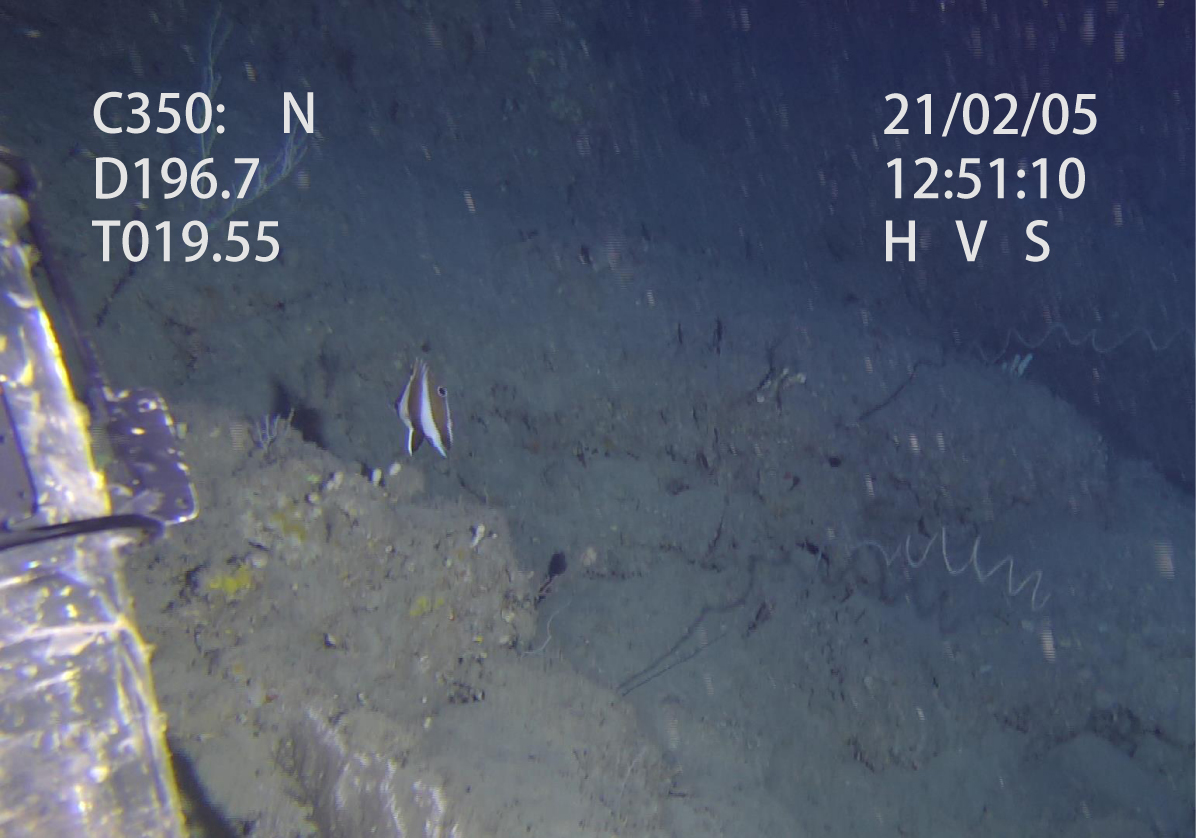 当館所有のROV(小型の無人潜水艇)により、沖縄本島周辺でも水深200m付近に生息することが確認された。